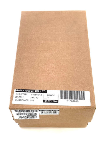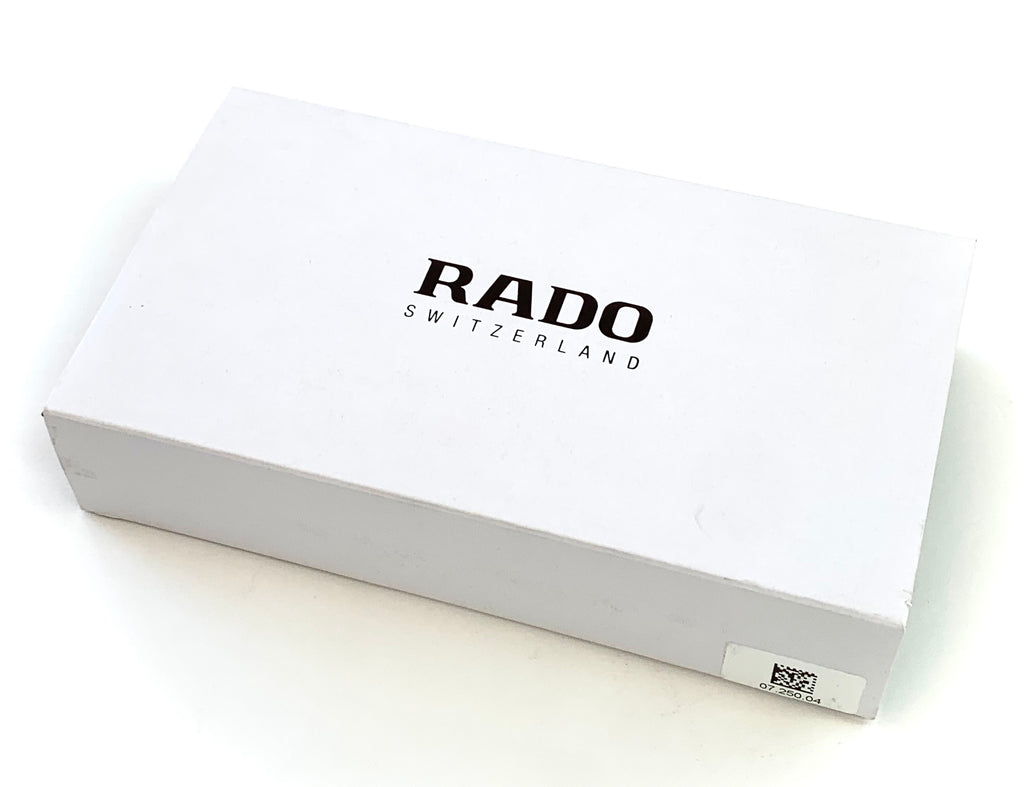 Box & Papers: Complete original sales set including both outer and inner boxes, the original shipping box, a leather watch pouch, hang tag and warranty cards.  Some of the protective blue stickers are still present on the straps and bracelet.