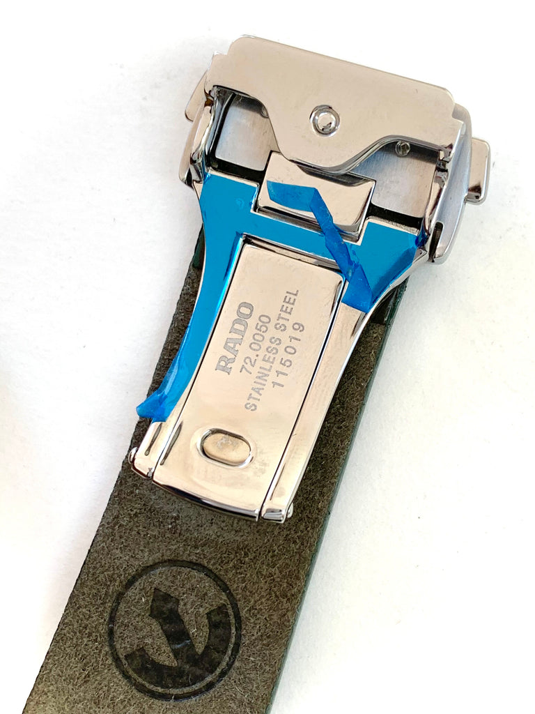 Dial: Factory printed original dial with a wonderful forest green coloured background matching the bezel perfectly, with wide luminous hour markers, silver minute mark chapter ring and date display in red at 3 o'clock.  Signed Rado Captain Cook, Swiss Made.  Matching broad arrow hands are also in mint condition.