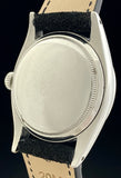 Movement: A superb Rolex in-house automatic movement calibre A296 in excellent working condition, freshly serviced here at Meticulous with our full 1-year mechanical warranty.  Fully signed Rolex Perpetual Chronometer, Swiss Made, Patented, Vis Tirette, Trigger Screw, Patented Selfwinder, 2 Ruby Jewels (which only applied to the automatic module). The main timekeeping movement underneath the module has another 15 jewels as was standard for the base calibre. Excellent cosmetic and mechanical condition throughout and ticking away strong!