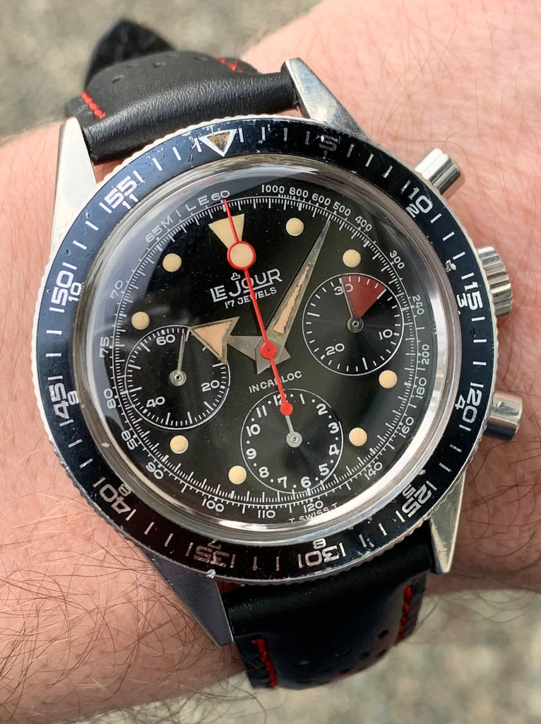 1970’s LeJour Divers Broad Arrow Chronograph Calibre Valjoux 72